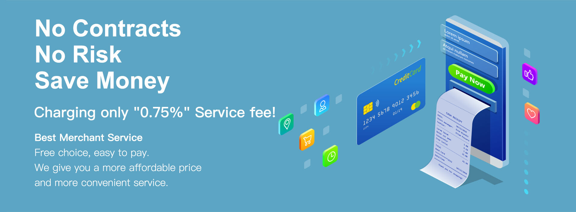 Free choice, easy to pay. We give you a more affordable price and more convenient service. Charging only "0.75%" Service fee!